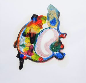 In einer späteren Phase sind dann kleinere Arbeiten unter Verwendung von Aquarellfarben auf gestrichenem Papier entstanden, die man, ebenso wie die Arbeiten in Öl auf Papier, als kleine Phantasiewelten und Universen bezeichnen kann, auf denen skurrile Wesen zu sehen sind und ihre Geschichten erzählen.