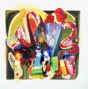 Durch Abdruck oder „Abklatsch“ mit einem zweiten Bildträger entsteht dann eine Vermischung der Farben, so dass beim Auseinanderziehen der beiden Malgründe, auf beiden Seiten kaum vorhersagbare Farbverläufe und Strukturen entstehen.
