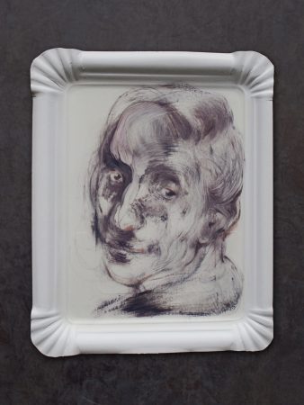 Köppe, Öl auf Imbissschale, 20,5 x 16,5 cm, 2019